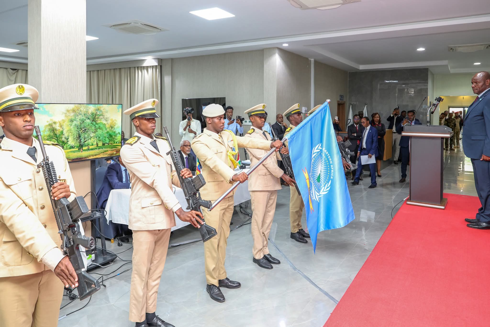 Dowladda Soomaaliya ayaa madashii shirka ku wareejisay guddoonka Ciidanka Heeganka Bariga Afrika oo ay sanad haysay, waxaana lagu wareejiyay dowladda Uganda, iyada oo unug tabobar heersare ah qaba oo ka tirsan Ciidanka Xoogga Dalka ay si hab-maamuus leh ku wareejiyeen calanka Ciidanka Heeganka Bariga Afrika. Wasiirka Gaashaandhigga Soomaaliya Danjire Axmed Macalin Fiqi oo shirka ka hadlay ayaa sheegay in tallaabooyin horumar ah la xaqiijiyay intii ay Soomaaliya haysay hoggaanka.