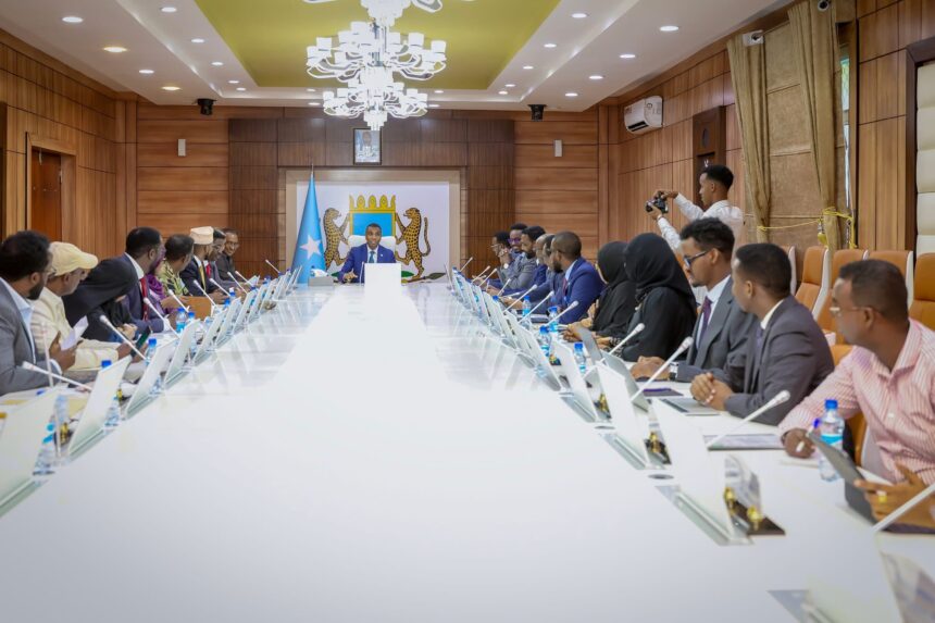 Raโiisul Wasaaraha Xukuumadda Jamhuuriyadda Federaalka Soomaaliya, Mudane Xamsa Cabdi Barre, ayaa guddoomiyey kulan looga hadlayo soo bandhigidda iyo dardargelinta Biyo-Mareenka magaalada caasimadda ah ee Muqdisho.