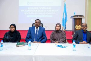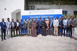 Muqdisho(Wargeyska Dalka):-Agaasimaha Guud ee Hay’adda Socdaalka iyo Jinsiyadda Mudane Mustafa Duhulow ayaa si rasmi ah u daah-furay banbax lagu diyaarinayo Qorshaha Waxqabad 2026 ee Hay’adda Socdaalka iyo Jinsiyadda oo uu halku dhigiisu ahaa (Adeeg Bixin Sahlan, Hufan, oo Tayo Leh). Banbaxaa waxaa qeyb ka ahaa Agaasime-ku-xigeennada Guud, lataliyeyaasha hay’adda, Agaasime Waaxeedyada, Agaasime Laameedyada, Madax Qeybeedyada, Madax Xafiisyeedyada, iyo Kormeerayaasha.