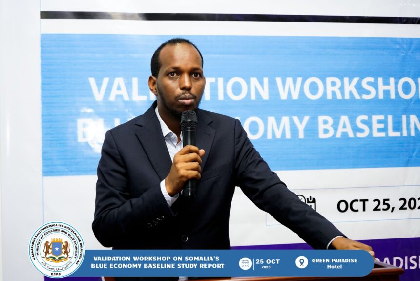 Wasiiru dowlaha wasaaradda kalluumeysiga iyo Dhaqaalaha Buluugga ah XFS Mudane Xildhibaan Maxamed Bashiir Cali Baxnaan ayaa daahfuray aqoon isweydaarsi ku saabsan soo bandhigidda daraasadda xogta aasaasiga ah ee dhaqaalaha bulluuga ah.