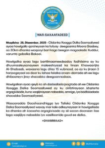 Howlgalka ayaa lagu bartilmaameedsaday fadhiisimo ay ku dhuumaaleysanayeen maleeshiyaad ka tirsan Khawaarijta Al-Shabaab, ayaa waxaa lagu dilay 15 xubnood, oo ay ku jiraan 3 horjoogayaal oo door ku lahaa falalka arxan-darrada ah ee lagu dhibaateyn jiray Shacabka Deegaannadaas.
