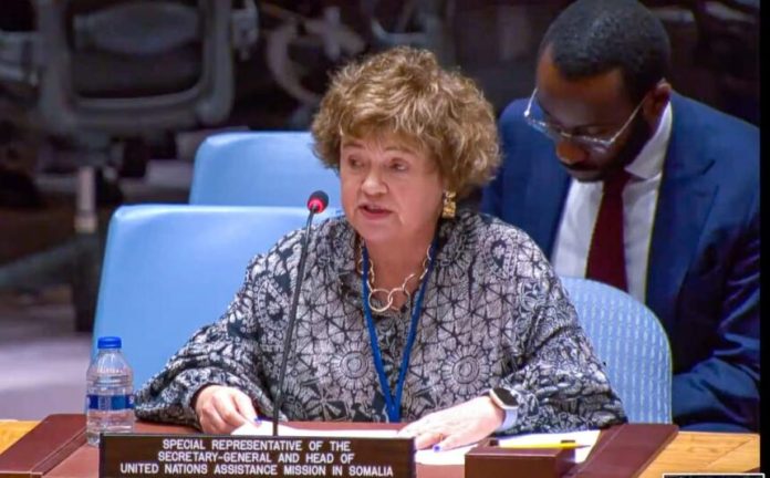 Wakiilka gaarka ee Qaramada Midoobay u qaabilsan Soomaaliya Catriona Laing, oo ka hadashay kullankeedii ugu horeeyay golaha ammaanka ee Qaramada Midoobay ayaa sheegtay in intii ay ku jirtay safarradii ay ku soo martay Soomaaliya labadii toddobaad ee ugu horreysay in ay indhaheeda ku soo aragtay horumarka baaxadda leh ee uu dalku ka sameeyay dhinaca Dowlad-dhiska iyo nabad-dhiska.