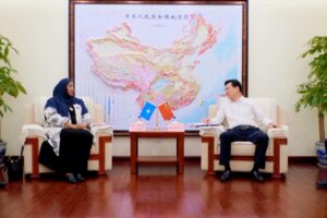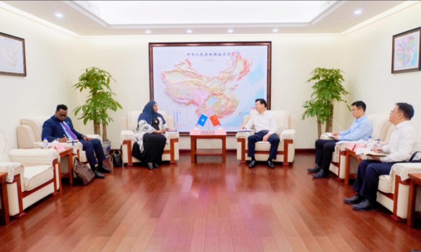 Beijing (Wargeyska Dalka):- Danjiraha Jamhuuriyadda Federaalka Soomaaliya ee Shiinaha, H.E. Dr. Hodan Osman Abdi, ayaa kulan wax-ku-ool ah la qaadatay Masuuliyiinta Hay’adda Sahanka Juqraafiyeed ee Shiinaha (China Geological Survey), oo ah Hay’ad Qaran oo hormuud ka ah daraasaadka Dhulka, xogta Juqraafiyeed iyo maamulka Khayraadka dabiiciga ah.