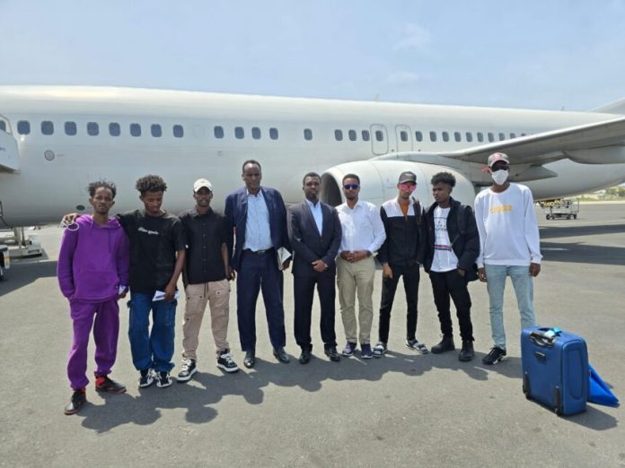 Xafiiska Ergayga Gaarka ah ee Muhaajiriinta iyo Xuquuqda Caruurta ee JFS, Wasaaradda Arrimaha Dibedda iyo Hay’adda IOM ayaa garoonka diyaaradaha Aadan Cadde ku soo dhaweeyay 7 dhallinyaro Soomaaliyeed oo laga soo saaray Xabsiyada dalka Liibiya.