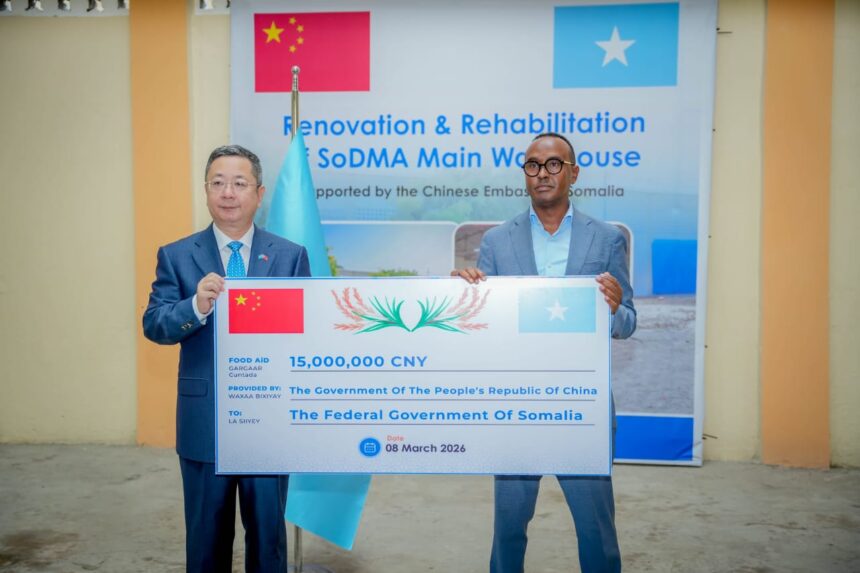 Muqdisho(Wargeyska Dalka):-Guddoomiyaha Hay’adda Maareynta Masiibooyinka Qaranka Soomaaliyeed (SoDMA), Mudane Maxamuud Macalin Cabdulle, ayaa si rasmi ah uga guddoomay Safiirka Shiinaha ee Soomaaliya, Wang Yu, Deeq Lacageed oo dhan $2 milyan iyo Raashin loogu talagalay in lagu taageero Dadka ay saameeyeen Abaaraha ka jira Dalka.