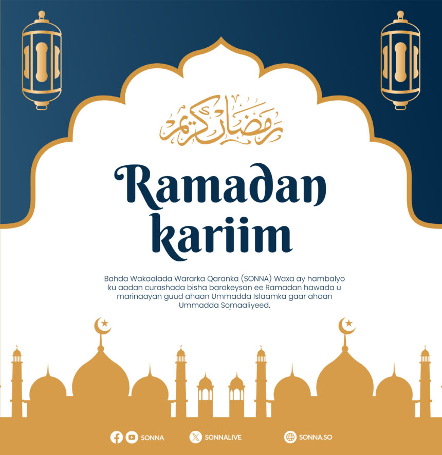 Dowladda Federaalka Soomaaliya ayaa xaqiijisay in berri ay tahay maalinta koowaad ee bisha Ramadaan, kadib markii culimada wasaaradda awqaafta iyo arrimaha diinta XFS ay dhaariyeen Jamaal Axmed Mayow oo sheegay in bilashada bisha Ramadaan uu ka arkay degmada Awdheegle ee gobolka Shabeellada Hoose.