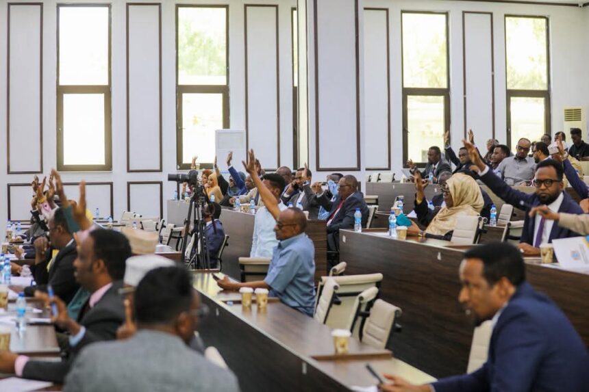 intaasi ka dib Xildhibaanada Golaha Shacabka ee Baarlamaanka Jamhuuriyadda Federaalka Soomaaliya ayaa cod u qaaday Heshiiskan, waxaana ogolaatay 141-Xildhibaan, laba Xildhibaan ayaa diiday, sidoo kalena hal Xildhibaan ayaa ka aamusay.