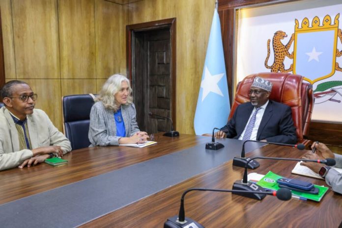 Muqdisho(Wargeyska Dalka):-Guddoomiyaha Golaha Shacabka ee Baarlamaanka Jamhuuriyadda Federaalka Soomaaliya, Mudane Sheekh Aadan Maxamed Nuur (Madoobe), ayaa xafiiskiisa kulan kula qaatay Safiirka Midowga Yurub ee Soomaaliya, Francesca Di Mauro. Safiirka ayaa ugu horreyn Guddoomiyaha uga warbixisay howlaha uu Xafiiska Midowga Yurub ka wado gudaha Soomaaliya, iyadoo sidoo kale ammaan u jeedisay Golaha Shacabka dadaalka ay ku bixiyeen samaynta shuruucda aas-aaska u ah dowladnimada dalka.