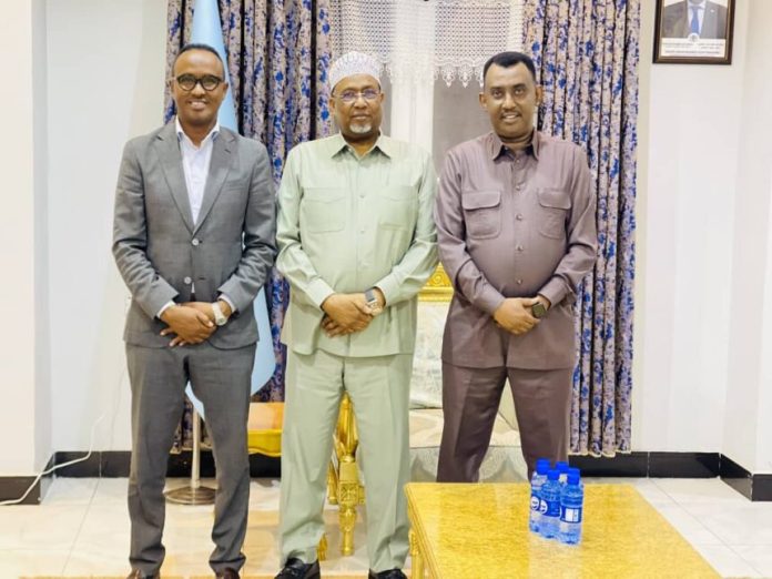 Guddoomiyaha Golaha Shacabka Baarlamaanka Jamhuuriyadda Federaalka Soomaaliya Mudane Sheekh Aadan Maxamed Nuur (Madoobe) ayaa Xafiiskiisa kula kulmay Guddoomiyaha Hay’adda Maareynta Musiibooyinka Qaranka Mudane Maxamuud Macallim Cabdulle iyo Lataliyaha Hay’adda ee Ka-hortaga Leexsashada Gargaarka Mudane C/khaadir Shariif Shiikuna.