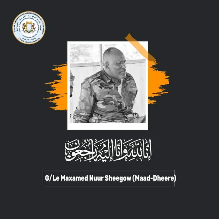 Guddoomiyaha Golaha Shacabka ee BJFS ahna Ku-simaha Madaxweynaha Jamhuuriyadda Mudane Sheekh Aadan Maxamed Nuur Madoobe ayaa ka tacsiyadeeyey geerida Gaashaanle Maxamed Nuur Sheegow (Maad Dheere) oo ahaa Taliyihii Guutada 8-aad qeybta 60-aad ee Ciidanka Xoogga Dalka Soomaaliyeed Iyo saraakiil kale oo ku shahiiday qarax miino oo khawaarijtu ugu maleegtay inta u dhaxeysa degmooyinka Awdiinle Iyo Berdaale ee Dowlad Goboleedka Koonfur Galbeed.