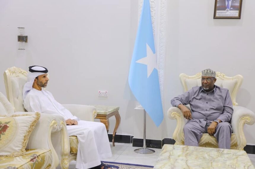 Guddoomiyaha golaha shacabka Baarlamaanka Jamhuuriyadda Federaalka Soomaaliya mudane Sheekh Aadan Maxamed Nuur (Madoobe) ayaa xafiiskiisa maanta ku qaabilay danjiraha dowladda Isutagga Imaaraadka Carabta mudane Axmed Jumah Al-rumayth.
