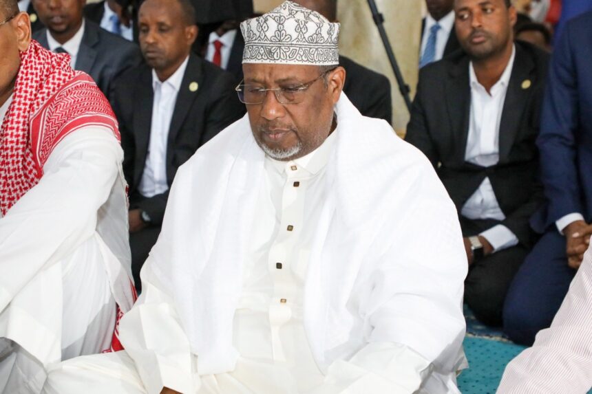 Guddoomiyaha Golaha Shacabka Baarlamaanka Jamhuuriyadda Federaalka Soomaaliya Mudane Sheekh Aadan Maxamed Nuur (Madoobe) ayaa Masaajidka Isbaheysiga Islaamka salaada Ciida kula tukaday Madaxweynaha JFS, mas’uuliyiinta ka tirsan dowladda iyo dadweyne aad u tira badan.