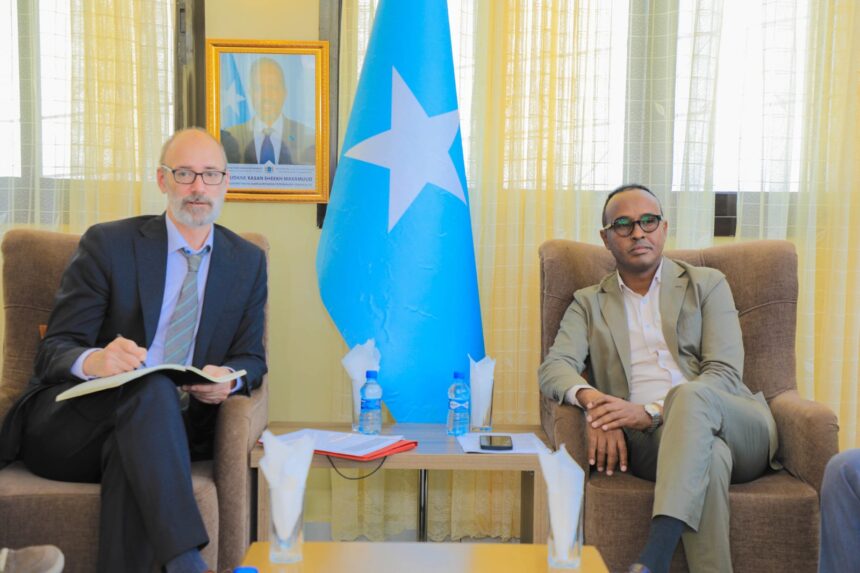 Guddoomiyaha hay’adda maareynta musiiboyinka Qaranka Soomaaliyed ee SoDMA mudane Maxamuud Macallim Cabdulle ayaa maanta xarunta dhexe ee SoDMA ku qaabilay ku xigeenka Ergeyga Xoghayaha Guud ee Qaramada Midoobay ee Soomaaliya ahna Iskuduwaha Gargaarka Bini’aadanimada George Conway.