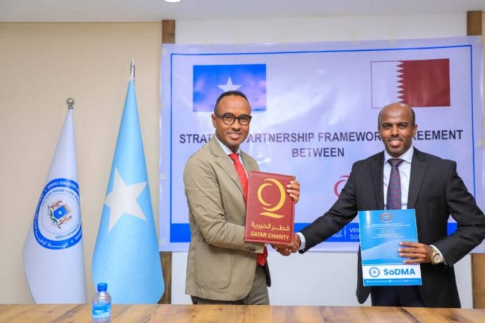 Guddoomiyaha Hay’adda Maareynta Musiibooyinka Qaranka,Maxamuud Macallin Cabdulle ayaa munaasabad kooban oo ka dhacday xarunta dhexe ee SoDMA waxa uu heshiis istiraatiiji ah kula saxiixday Guddoomiyaha Hay’adda Qatar Charity Xafiiskeda Soomaaliya Cabdifitaax Aadan Macallin.
