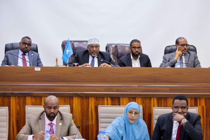 Guddoomiyaha Golaha Shacabka Baarlamaanka Jamhuuriyadda Federaalka Soomaaliya Mudane Sheekh Aadan Maxamed Nuur (Madoobe) ayaa shir guddoomiyay Kalfadhiga 4-aad kulankiisa 14-aad ee Labada Gole Baarlamaanka Jamhuuriyadda Federaalka Soomaaliya.