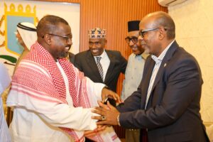 Mudisho(Wargeyska Dalka):- Guddoomiye ku-xigeenka labaad ee Golaha Shacabka Baarlamaanka ee Jamhuuriyadda Federaalka Soomaaliya Mudane Cabdullaahi Cumar Abshirow oo ay wehliyaan Xildhibaano ka tirsan Golaha Shacabka Baarlamaanka iyo Senataro ka tirsan Golaha Aqalka sare ee JFS ayaa Magaaladda Muqdisho kusoo dhoweeyay guddoomiyaha Golaha Baarlamaanka Caalamka ee Nabadda iyo Is-cafiska Axmed bin Maxamed Al-Jarwaan iyo wafdi uu hogaaminayo oo dalka soo gaaray.