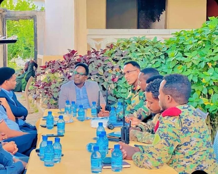 Guddoomiye ku-xigeenka amniga iyo siyaasada Maamulka Gobolka Banaadir Mudane Maxamed Ahmed Diiriye (Yabooh) oo uu wehliyo Xog’hayaha guud ee maamulka gobolka Banaadir mudane Feysal Caraale Afrax ayaa waaxda Juungal ee degmada Yaaqshid kula qaatay saraakiisha ciidanka xasilinta caasimadda.