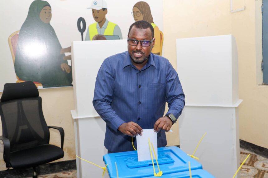 Guddoomiye ku-xigeenka labaad ee Golaha Shacabka Baarlamaanka Jamhuuriyadda Federaalka Soomaaliya Mudane Cabdullaahi Cumar Abshirow oo ka qeyb galay doorashada golaha deegaanka Gobolka Benaadir ayaa maanta waxa uu codkiisa ka dhiibtay Degmada Dharkeenley.