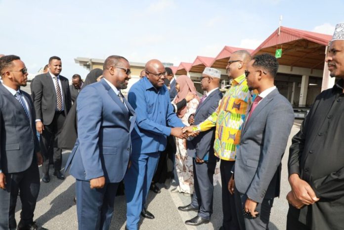 Guddoomiye kuxigeenka labaad ee golaha shacabka BJFS Mudane Cabdullaahi Cumar Abshirow oo ay wehliyaan xildhibaano ka tirsan labada Aqal ee baarlamaanka dalka ayaa garoonka diyaaradaha caalamiga ah ee Aadan Cabdulle kusoo dhoweeyay wafdi uu hogaaminayo guddoomiyaha baarlamaanka Urur Goboleedka Bulshada Bariga Afrika Joseph NTAKIRUTIMANA iyo wafdi uu hogaaminayo oo maanta soo gaaray Magaaladda Muqdisho ee caasimadda Dalka.