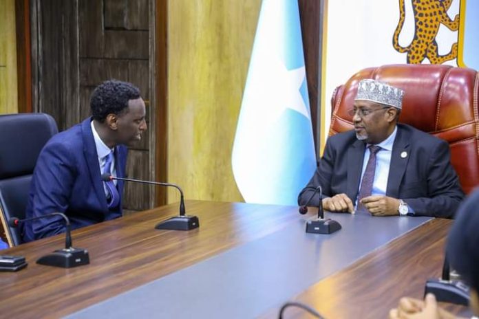 Guddoomiye Sheekh Aadan Madoobe oo xafiiskiisa ku qaabilay lataliye xamse warfaa