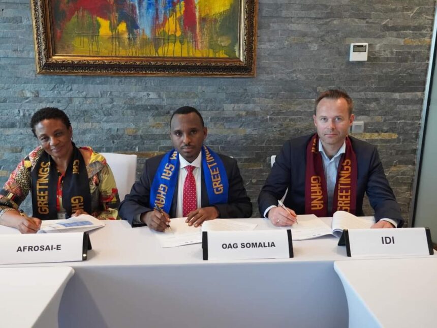 Hanti-dhowraha Guud ee Qaranka Mudane Abuukaate Axmed Ciise Guutaale ayaa saxiixay heshiis saddex-geesood oo ka dhexeeya Xafiiska Hantidhawrka Guud ee Qaranka, Hay’adda Horumarinta INTOSAI (IDI) iyo Ururka Hay’adaha Hantidhawrada Guud ee Afrika ee ku hadla Ingiriisiga (AFROSAI-E).