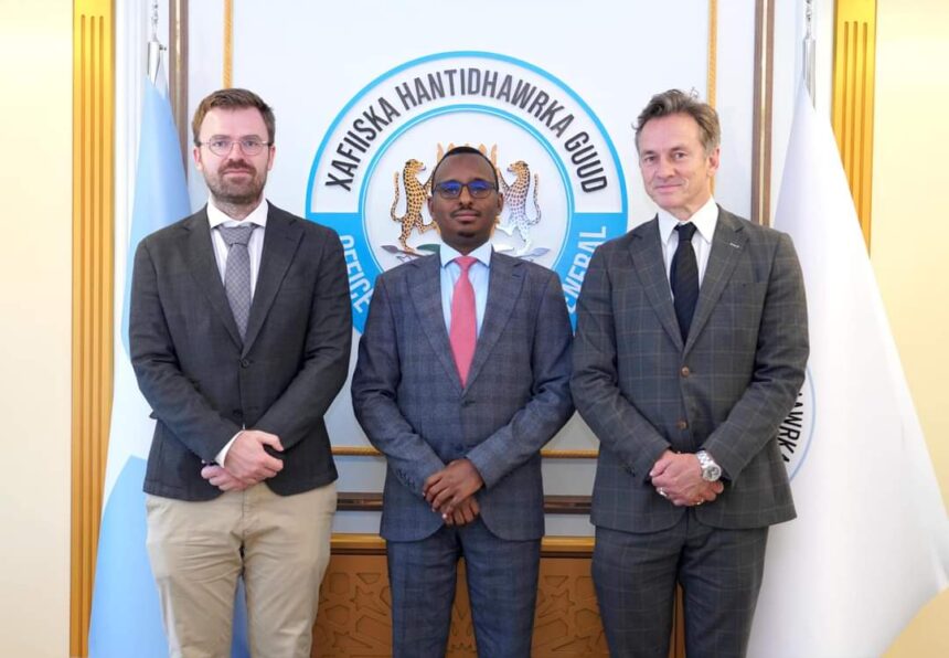 Hantidhawraha Guud ee Qaranka Mudane, Abuukaate Axmed Ciise Guutaale ayaa maanta qaabbilay sii hayaha Saafaradda Norway ee Soomaaliya Mudane, Haakon Svane iyo Madaxa Iskaashiga Saafaradda ee Kenya iyo Soomaaliya Mudane, Erling Hess.