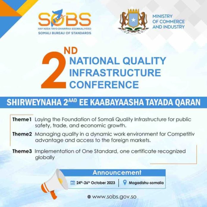 ay’adda Tayo-Dhawrka Soomaaliyeed ayaa qaban qaabo xooggan ugu jirta qabsashada  Shirwaynaha 2-aad ee Kaabayaasha Tayada Qaranka, shirkaas oo ay hay’addu qabanayso sanadkii 2-aaD, wuxuuna ka dhici doonaa Magaalada Mogadisho inta u dhaxeysa 24 illaa 26 October 2023.