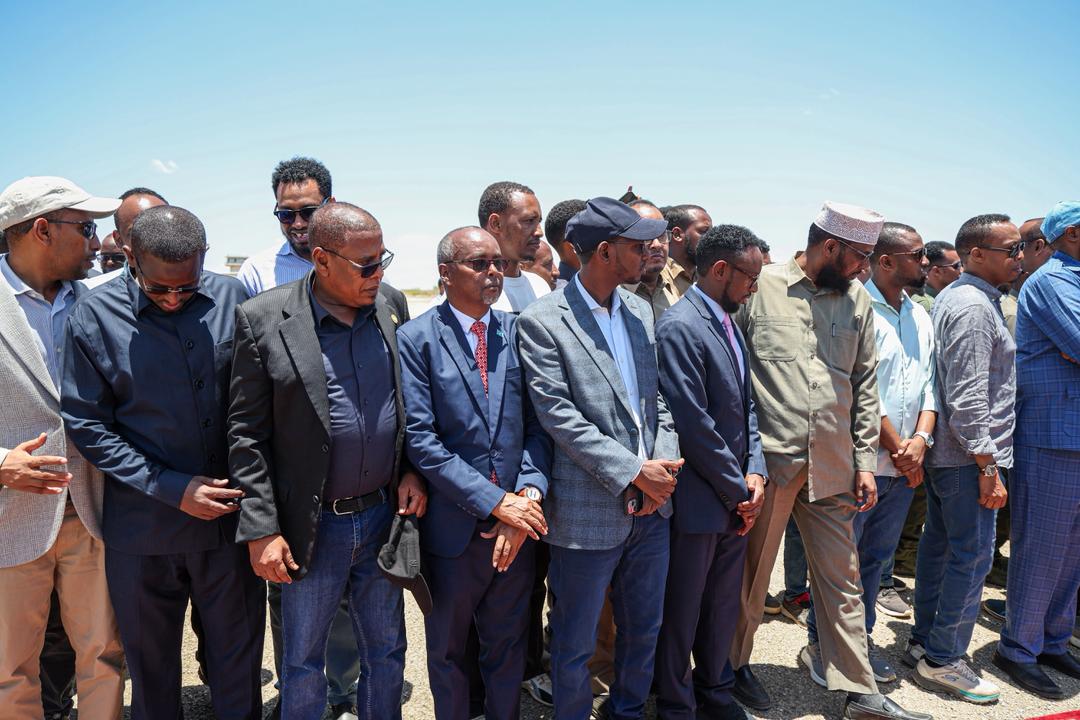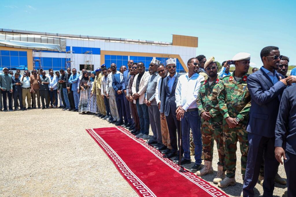 Wafdiga uu hoggaaminaayo hoggaamiyaha waxaa garoonka diyaaradaha ku soo dhaweeyay wasiirro ka tirsan xukuumadda, siyaasiyiinta deegaanka, saraakiil iyo qeybaha kale ee bulshada.