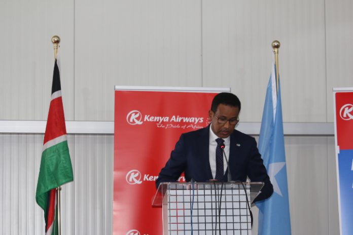 Nairobi:- Safiirka Soomaaliya ee dalka Kenya Danjire Jabriil Ibraahim Cabdulle ayaa ka qeybgalay manaasabad xarigga looga jarayay Duulimaadkii ugu horeeyay ee Diyaaradda Kenya Airways ku tageyso Magaalada Muqdisho.
