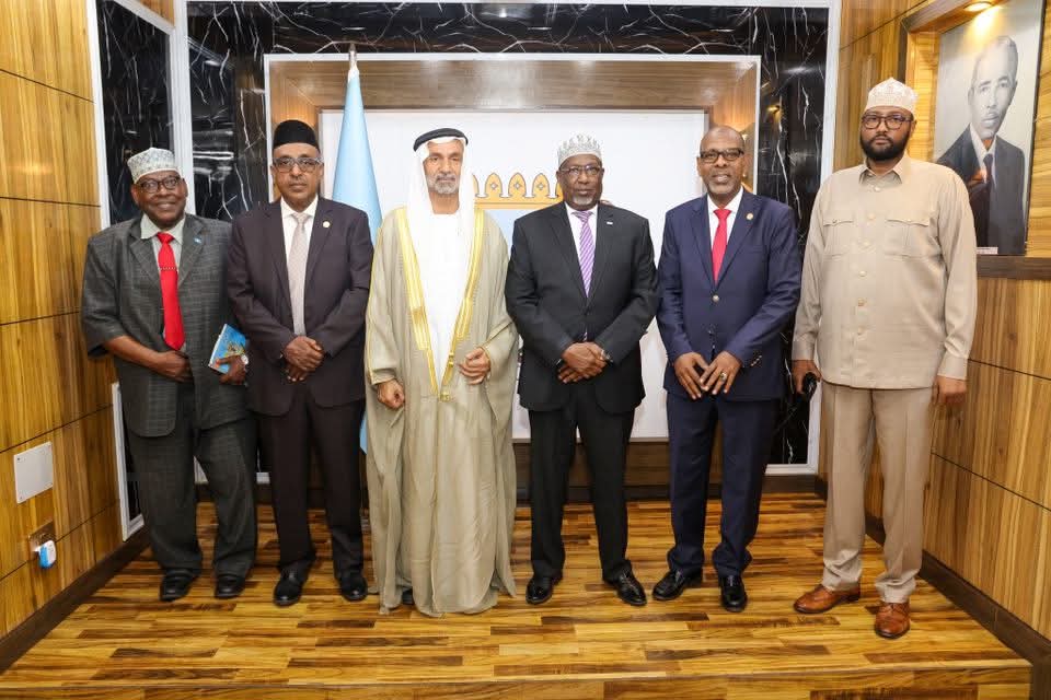 Muqdisho(Wargeyska Dalka)- Kusimaha Madaxweynaha Jamhuuriyadda Ahna Guddoomiyaha Golaha Shacabka ee Baarlamaanka Jamhuuriyadda Federaalka Soomaaliya Mudane Sheekh Aadan Maxamed Nuur (Madoobe) ayaa xafiiskiisa kulan mira dhal ah kula qaatay Guddoomiyaha Golaha Baarlamaanka caalamiga ah ee Is-cafinta iyo Nabadda Axmed bin Maxamed Al-Jarwaan oo isaga iyo wafdi uu hogaaminaayo shalay soo gaaray Magaaladda Muqdisho.