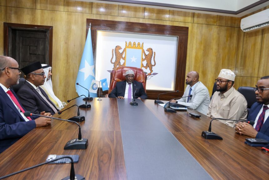 Muqdisho(Wargeyska Dalka)- Kusimaha Madaxweynaha Jamhuuriyadda Ahna Guddoomiyaha Golaha Shacabka ee Baarlamaanka Jamhuuriyadda Federaalka Soomaaliya Mudane Sheekh Aadan Maxamed Nuur (Madoobe) ayaa xafiiskiisa kulan mira dhal ah kula qaatay Guddoomiyaha Golaha Baarlamaanka caalamiga ah ee Is-cafinta iyo Nabadda Axmed bin Maxamed Al-Jarwaan oo isaga iyo wafdi uu hogaaminaayo shalay soo gaaray Magaaladda Muqdisho.