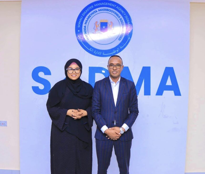 Ergayga gaarka ah ee Guddoomiyaha Gobolka Banaadir Ahna Duqa Magalaada Muqdisho u qaabbilsan arrimaha Abaaraha, Yaasmiin Jaamac Xasan ayaa kulan muhiim ah oo ku saabsan xal u helidda Maareenta dadka Barakacayaasha iyo sidii loo horumarin lahaa nolashooda la qaadatay Gudoomiyaha hey’adda Maareynta Musiibooyinka Qaranka Maxamud Macalim.