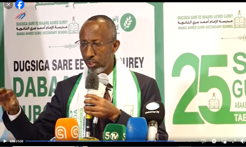 Wasiirka Waxbarashada iyo Hiddaha iyo Tacliinta sare Faarax Sheekh C/qaadir iyo Xildhibaano ka tirsan labada Aqal ee baarlamaanka ayaa ka qaybgalay munaasab loogu dabaal-dagayay sanadguuradii 25-aad ee ka soo wareegatay aas-aaska dugsiga sare ee Iimaan Axmed Gurey.