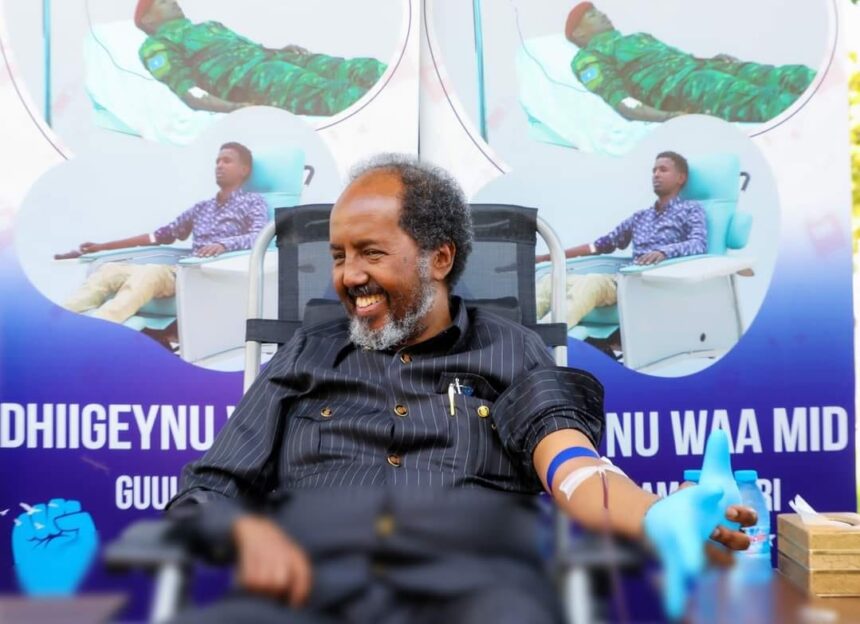Dhanka kale Madaxwyne Xasan Sheekh Maxamuud ayaa ugu baaqay shacabka Soomaaliyeed, in ay ka qeyb qaataan olalahaan ee dhiigga loogu shubaayo Ciidamada Xoogga dalka Soomaaliyeed.