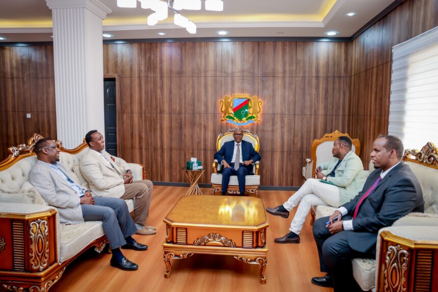 Baydhbo (Wargeyska Dalka):- Madaxweynaha Dowlad-Goboleedka Koonfur Galbeed Mudane Cabdicasiis Xasan Maxamed (Laftagareen) ayaa Xarunta Madaxtooyada ee Magaalada Baydhabo ku qaabilay Guddoomiyaha Guddiga Madaxa-bannaan ee Doorashooyinka Qaranka Mudane Cabdikariin Axmed Xasan iyo Wafdi uu hoggaaminayo kuwaas oo Maanta soo gaaray Magaalada Baydhabo ee Xarunta maamulka Koonfur Galbeed.