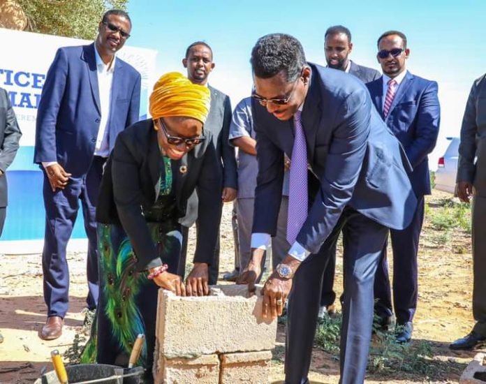 Madaxweynaha Dowladda goboleedka Galmudug Mudane Axmed Cabdi Kaariye iyo ku xigeenka erygeyga gaarka ah ee Qarammada Midoobe ee Soomaaliya Anita Kiki Gbeho ayaa si wadajir ah u dhagax dhigay dhismaha xarunta Qarammada Midoobe ee Dhuusamarreeb.