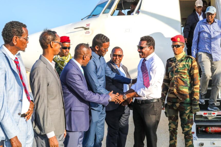 Madaxweynaha Maamulka Galmudug Mudane Axmed Cabdi Kaariye oo hoggaaminaya wafdi sare ayaa galabta gaaray degmada Hobyo ee Glgobolka Mudug.