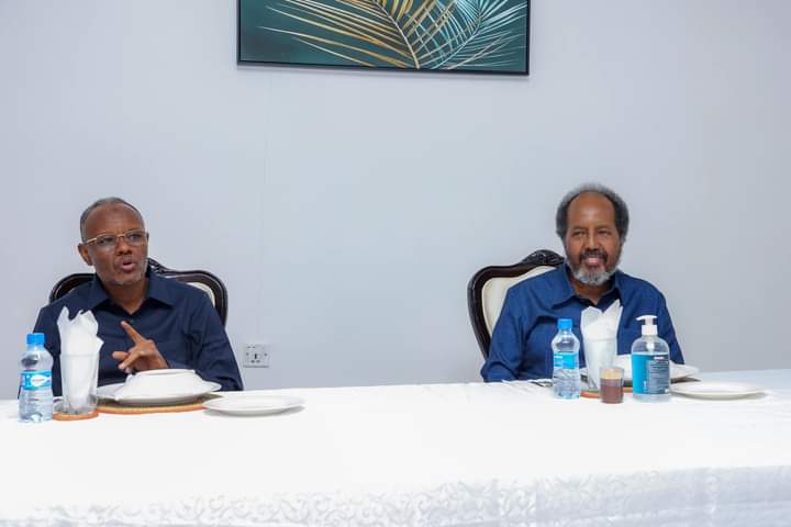 Baydhabo:- Madaxweynaha Jamhuuriyadda Federaalka Soomaaliya Mudane Xasan Sheekh Maxamuud oo uu weheliyo Madaxweynaha Koonfur-galbeed Mudane Cabdicasiis Xasan Maxamed ayaa caawa kala hadlay waxgaradka iyo dubabka dhaqanka Koonfur-galbeed qorshaha qaran ee dabar-goynta argagixisada iyo xoreynta dalka.