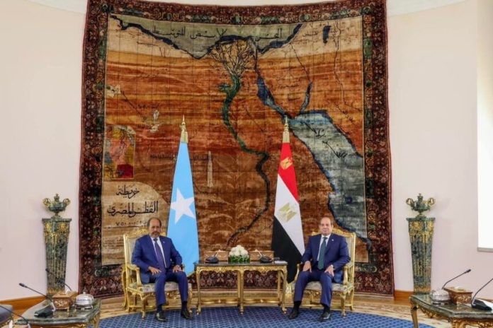Muqdisho(Wargeyska Dalka):-Madaxweynaha Jamhuuriyadda Federaalka Soomaaliya, Mudane Xasan Sheekh Maxamuud, ayaa soo dhaweyn Heer Sare ah loogu sameeyay Qasriga Madaxtooyada Al-Ittixaadiya ee Magaalada Qaahira, Caasimadda Jamhuuriyadda Carbeed ee Masar, halkaas oo uu ku qaabilay Dhiggiisa Masar, Mudane Cabdifataax Al-Sisi.