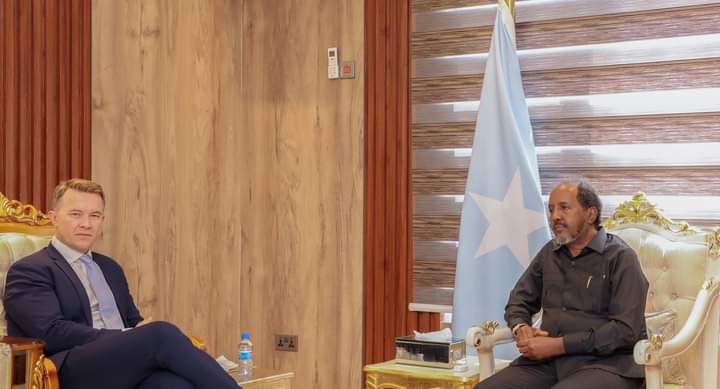 Madaxweynaha Jamhuuriyadda Federaalka Soomaaliya, Mudane Xasan Sheekh Maxamuud oo dalka dib ugu aoo laabtay ayaa kulan la qaatay Wasiir Ku-xigeenka Arrimaha Dibadda dalka Norway, Mudane Andreas Kravik oo booqasho ku yimid caasimadda Muqdisho.
