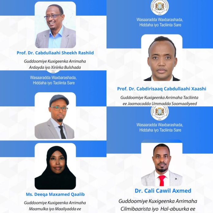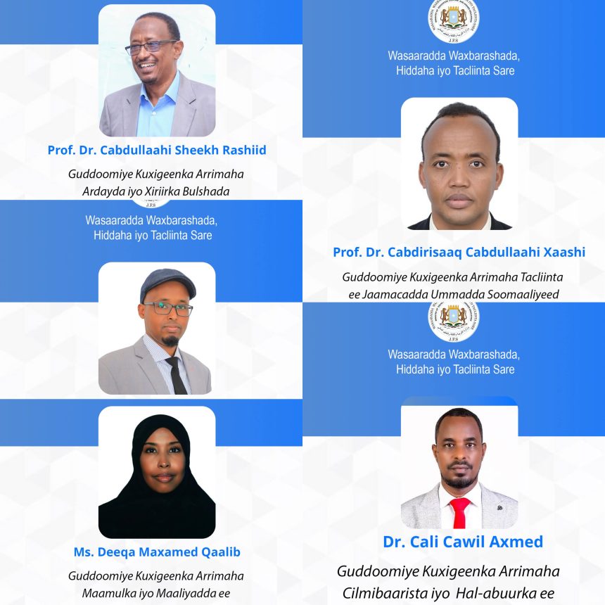 Muqdisho(Wargeyska Dalka):-Madaxweynaha Jamhuuriyadda Federaalka Soomaaliya, Mudane Dr. Xasan Sheekh Maxamuud, ayaa magacaabay masuuliyiinta hoos ku xusan ee loo magacaabay Xilalka Guddoomiye Kuxigeennada Jaamacadda Ummadda Soomaaliyeed: