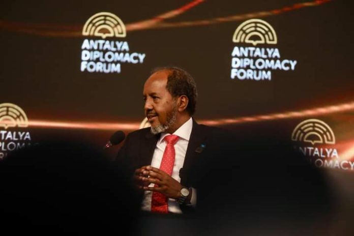 Madaxweynaha Jamhuuriyadda Federaalka Soomaaliya Mudane Xasan Sheekh Maxamuud oo shalay ka qeyb-galay Madasha Diblumaasiyadda Antalya ee dalka Turkiga ayaa ka hadlay mustaqbalka wanaagsan ee Soomaaliya iyo muhiimadda ay leedahay xasilloonida marinnada muhiimka ah ee ay ka mid tahay Badda Cas.