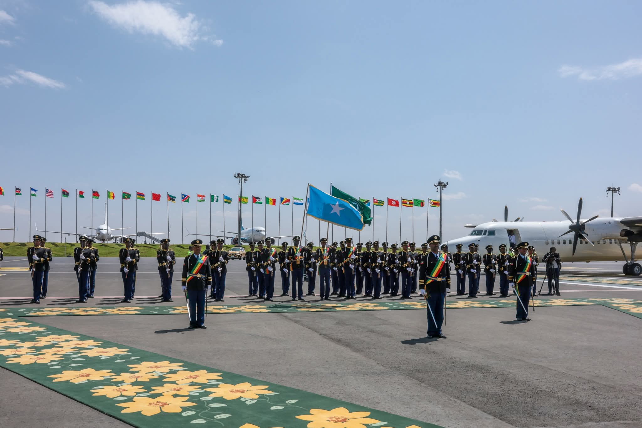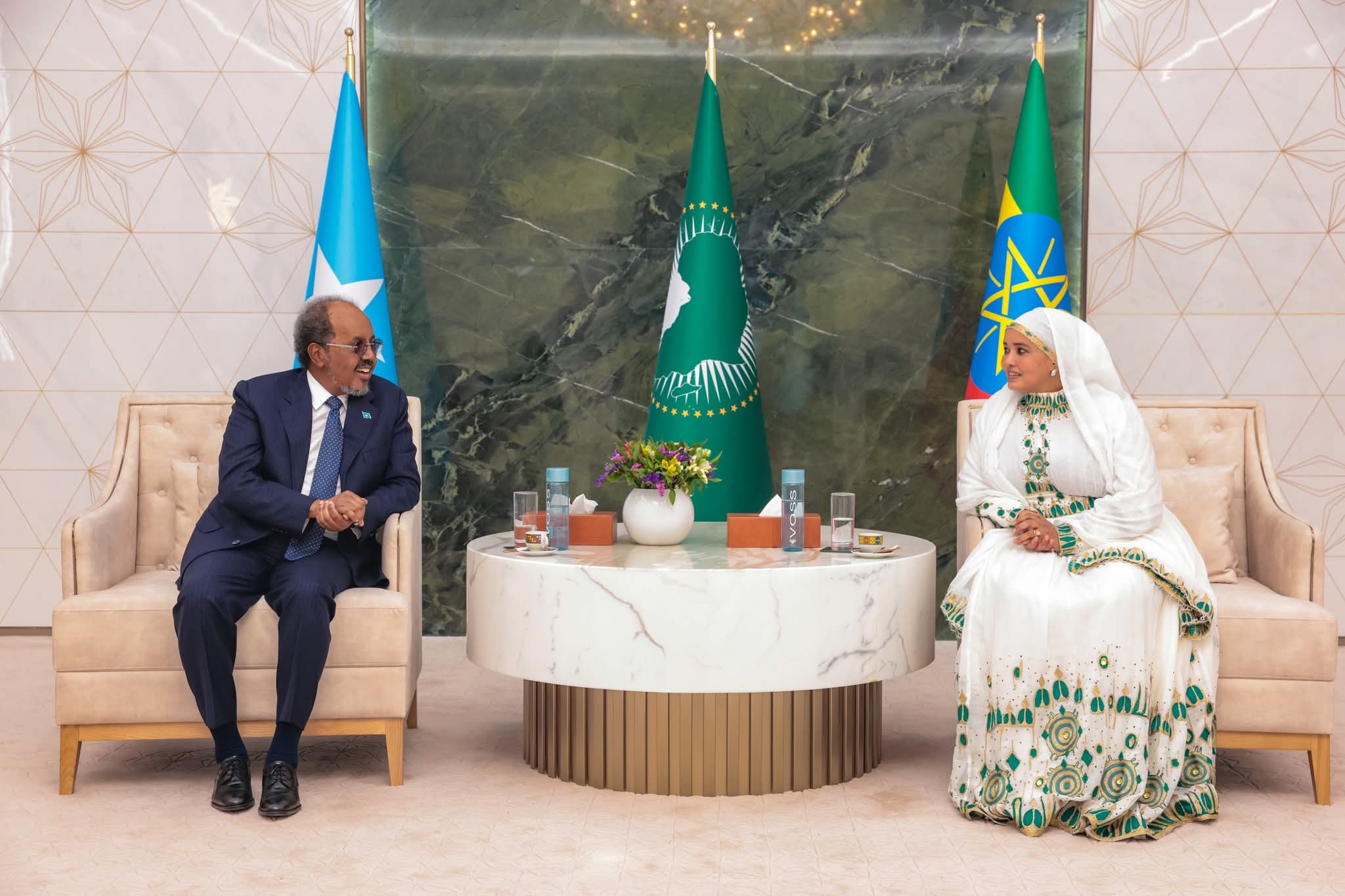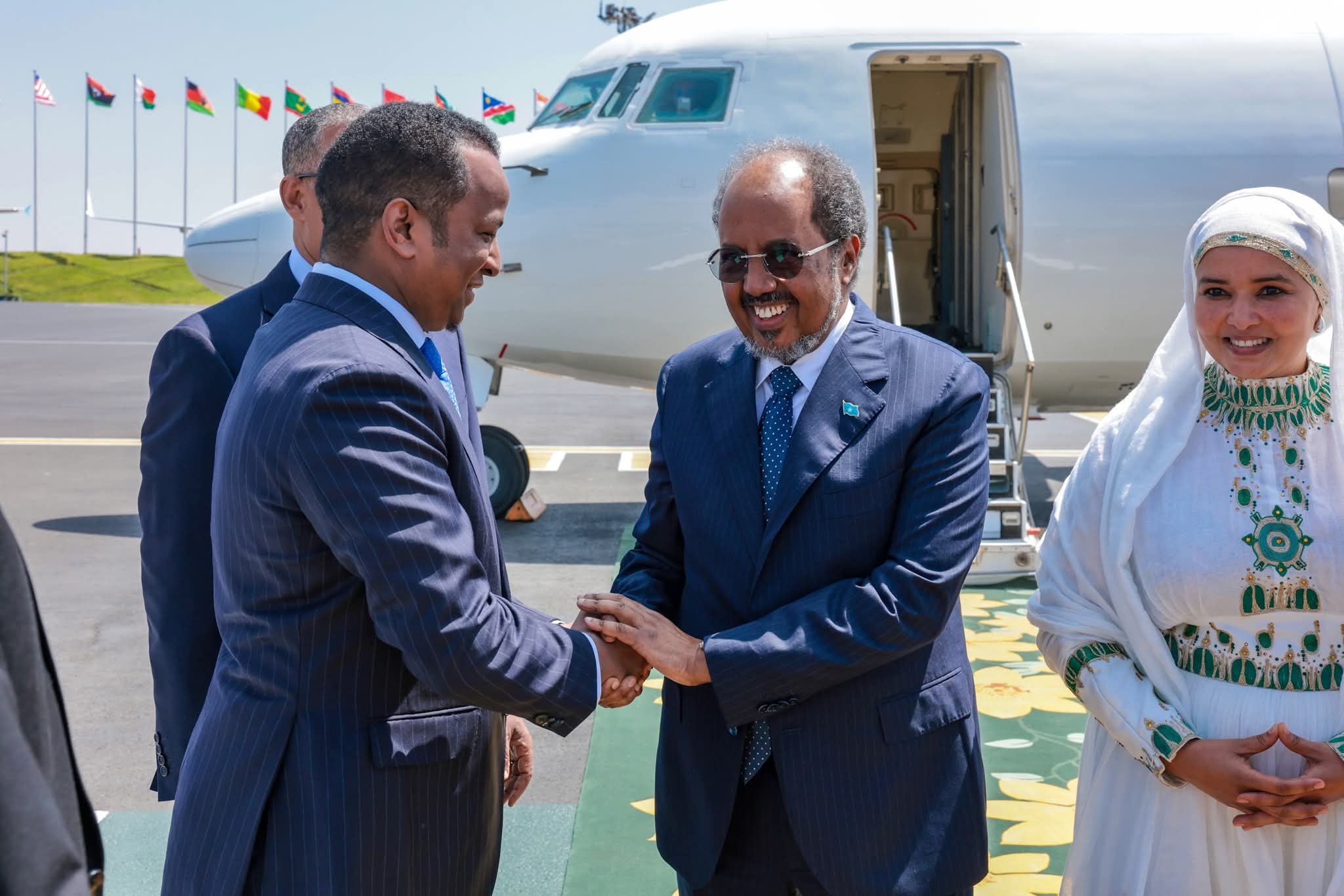 Addis ababa:- Madaxweynaha Jamhuuriyadda Federaalka Soomaaliya Mudane Xasan Sheekh Maxamuud iyo wafdi uu hoggaaminayo ayaa si diiran loogu soo dhoweeyay magaalada Addis Ababa ee caasimadda dalka Itoobiya.