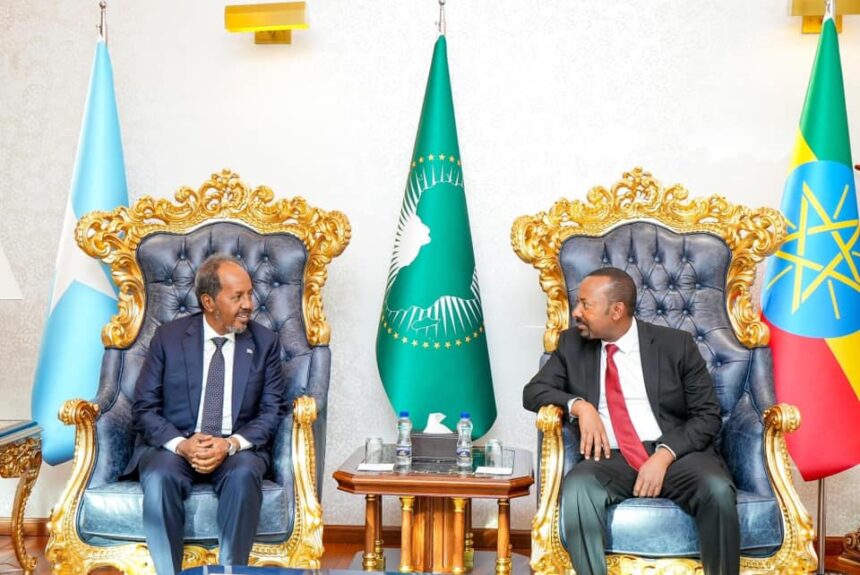 Addis Ababa- Madaxweynaha Jamhuuriyadda Federaalka Soomaaliya Mudane Xasan Sheekh Maxamuud iyo wafdi uu hoggaaminayo ayaa gaaray magaalada Addis Ababa, halkaas oo ay kaga qayb gelayaan shir saddex geesood ah oo ay yeelanayaan dalalka Soomaaliya, Itoobiya iyo Talyaaniga.