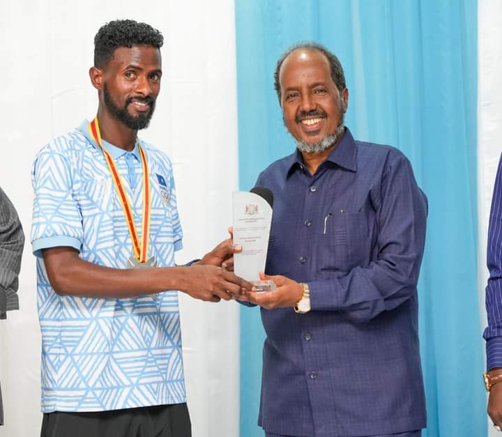 Madaxweynaha Jamhuuriyadda Federaalka Soomaaliya mudane Xasan Sheekh Maxamuud oo dhiirigalinaya Halyeey Cabdullaahi Jaamac Maxamed oo ku guuleystay Billadda Qalinka ah ee tartanka orodka 5000 mitir ee Ciyaaraha Guud ee Qaramada Afrika ayaa ku maamuusay Billadda ugu sarreysa ciyaaraha dalka oo uu ku mutay guusha taariikhiga ah ee uu usoo hooyay dalkiisa.