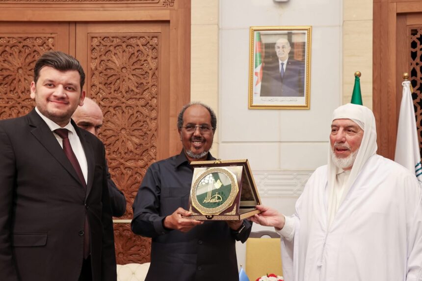 Madaxweynaha oo maalinti labaad ku sugan dalka Aljeeriya ayaa booqday Masaajidka weyn ee Jaamaca Aljeeriya, halkaas oo uu kula kulmay culimada dalkaas oo guddoonsiiyey xasuus reeb ku aaddan booqashada Madaxweynaha, iyagoo la wadaagay sida ay uga soo horjeedaan fikirka argagixisadu ay ku bannaysanayaan dhiigga shacabka Soomaaliyeed.