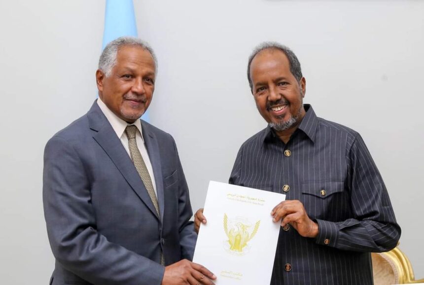 Madaxweynaha Jamhuuriyadda Federaalka Soomaaliya Mudane Xasan Sheekh Maxamuud oo la kulmay Ergeyga ka socday Golaha Sare ee dalka Suudaan Danjire Dafcallah Al-xaaji Cali ayaa la wadaagay sida Dowladda Federaalka Soomaaliya ay uga walaacsan tahay iska-hor imaadka hubaysan ee ka socda dalkaas.