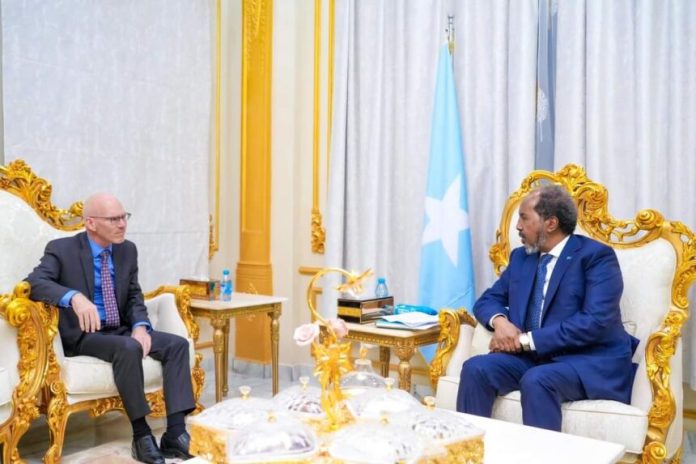 Madaxweyne Xasan Sheekh ayaa Danjire James Swan la wadaagay dadaallada dowladdu ay ku bixinayso dagaalka ka dhanka ah argagixisada, kobcinta dhaqaalaha, iyo horumarinta dalka, isaga oo u rajeeyay in uu si hufan u guto waajibaadkiisa cusub.