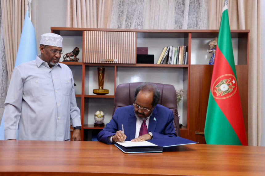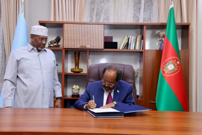 Madaxweynaha Jamhuuriyadda Federaalka Soomaaliya Xasan Sheekh Maxamuud ayaa maanta saxiixay Heshiiska Iskaashiga Difaaca iyo Dhaqaalaha ee dowladaha Soomaaliya iyo Turkiga oo ay ansixiyeen Xildhibaanada Golaha Shacabka ee Baarlamaanka Federaalka Soomaaliya.