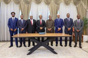 Muqdisho,(Wargeyska Dalka):- Madaxweynaha Jamhuuriyadda Federaalka Soomaaliya, Mudane Xasan Sheekh Maxamuud ayaa Maanta si rasmi ah u saxiixay Nuqulka Dastuurka Cusub ee Jamhuuriyadda Federaalka Soomaaliya oo ah tiirka ugu muhiimsan ee dhismaha Dowladnimada iyo Nidaamka Sharci ee Dalka, kaddib markii ay soo ansixiyeen Labada Aqal ee Baarlamaanka Federaalka Soomaaliya.